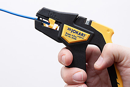PELACABLE AUTOMÁTICO EN DISEÑO DE 2 COMPONENTES PARA CONDUCTORES Y HEBRAS DE 0,2 A 6 MM2 (AWG 24 – 10) CON CORTADOR LATERAL DE HASTA 2,5 MM2 (AWG 14) Y TOPE DE LONGITUD DE 6 A 15 MM.MARCA JOKARI, MODELO SUPER 4 PRO